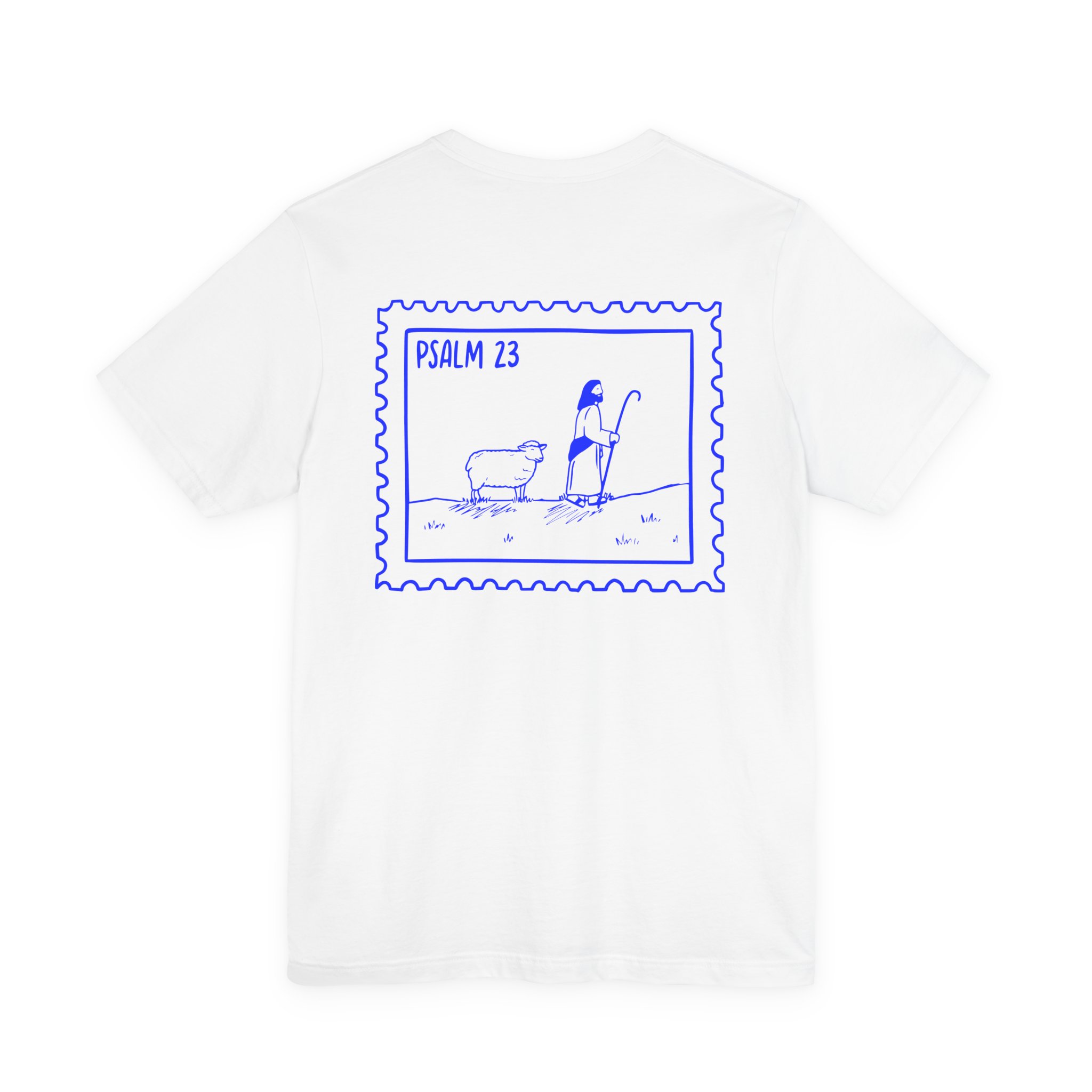 Christian t-shirt featuring Psalm 23 from the Bible. Gives a spiritual and comforting vibe, perfect for those seeking faith-inspired apparel. Relevant for Christian holidays, church gatherings, and everyday wear for believers.