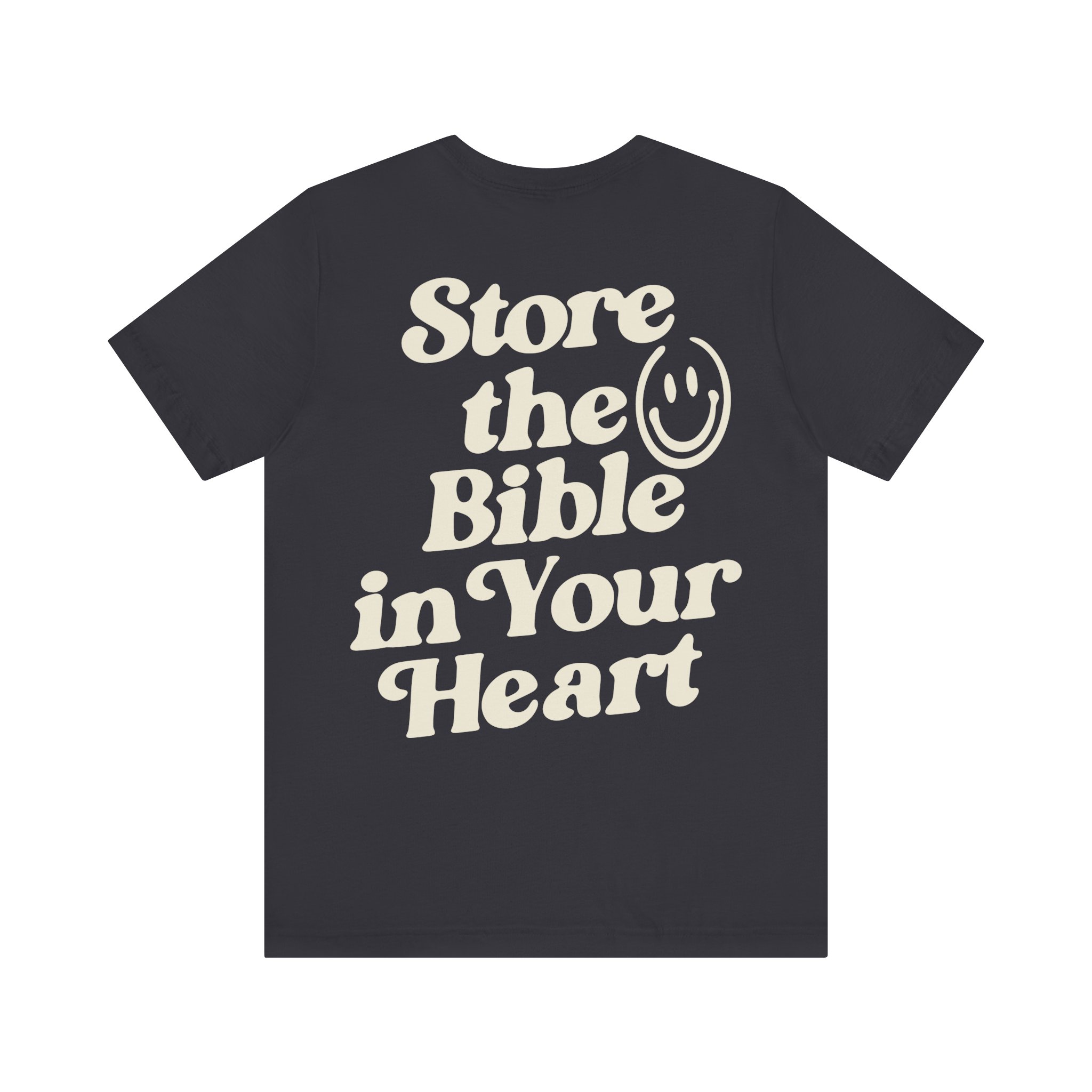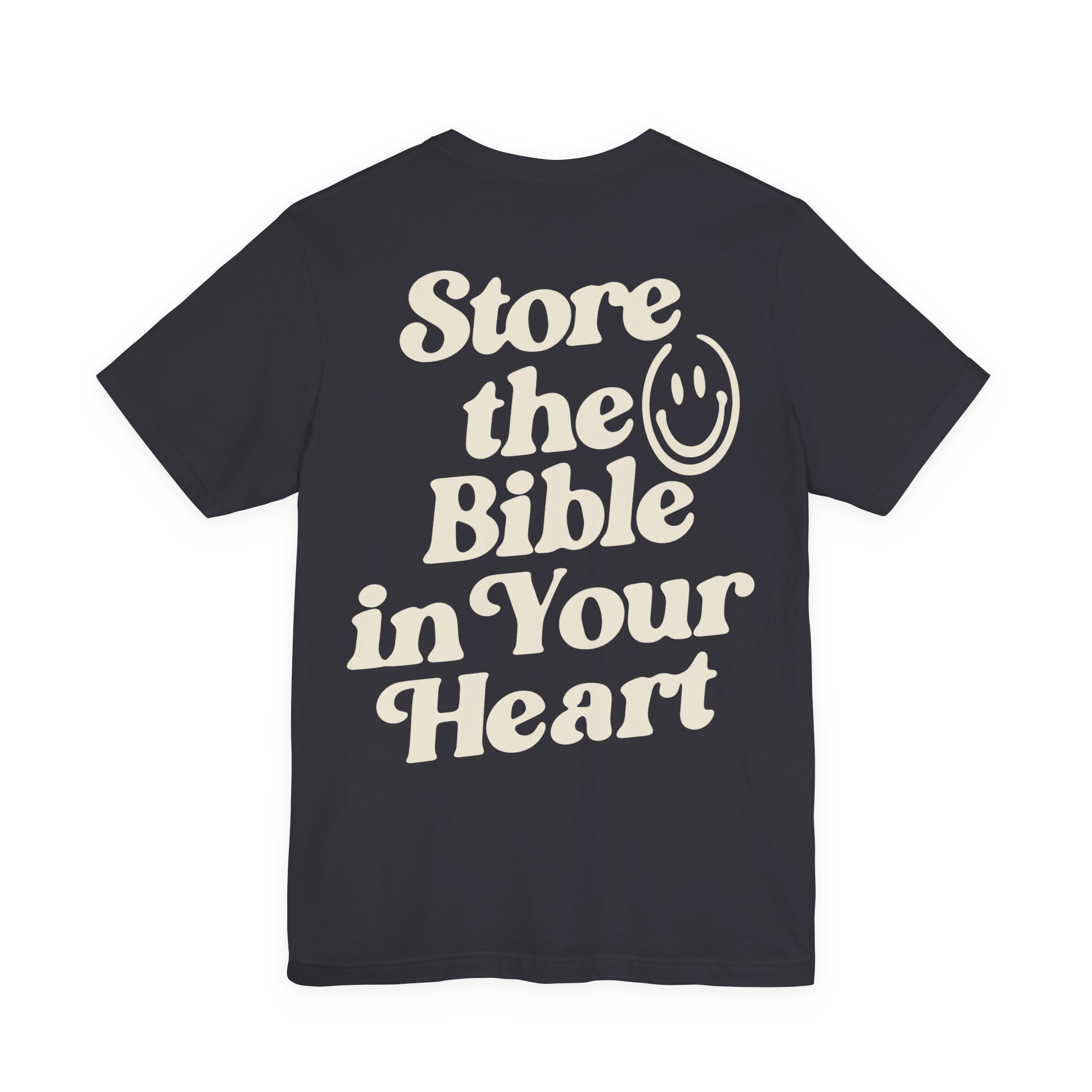 Be the first to review “Store The Bible In Your Heart Short Sleeve Tee” Cancel reply