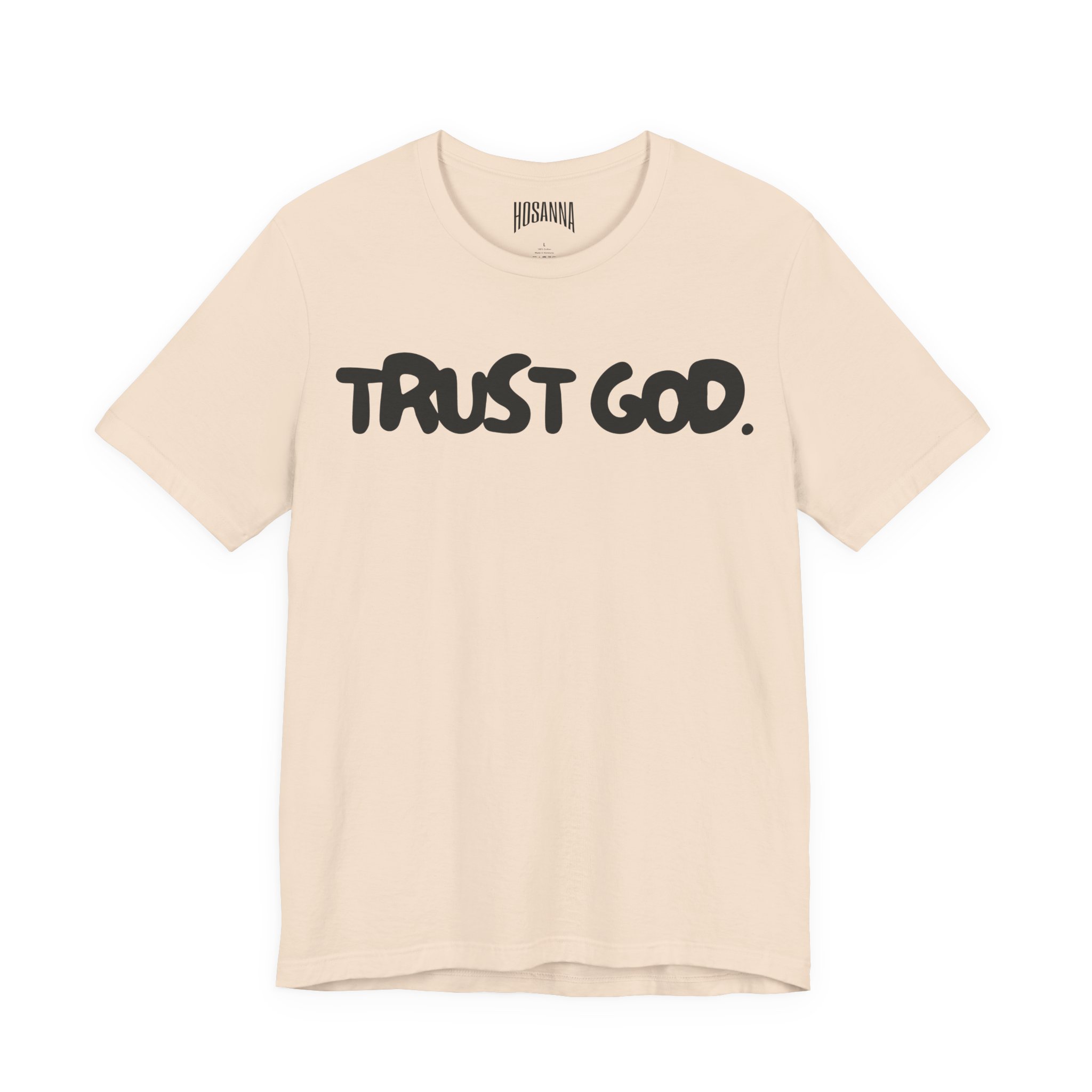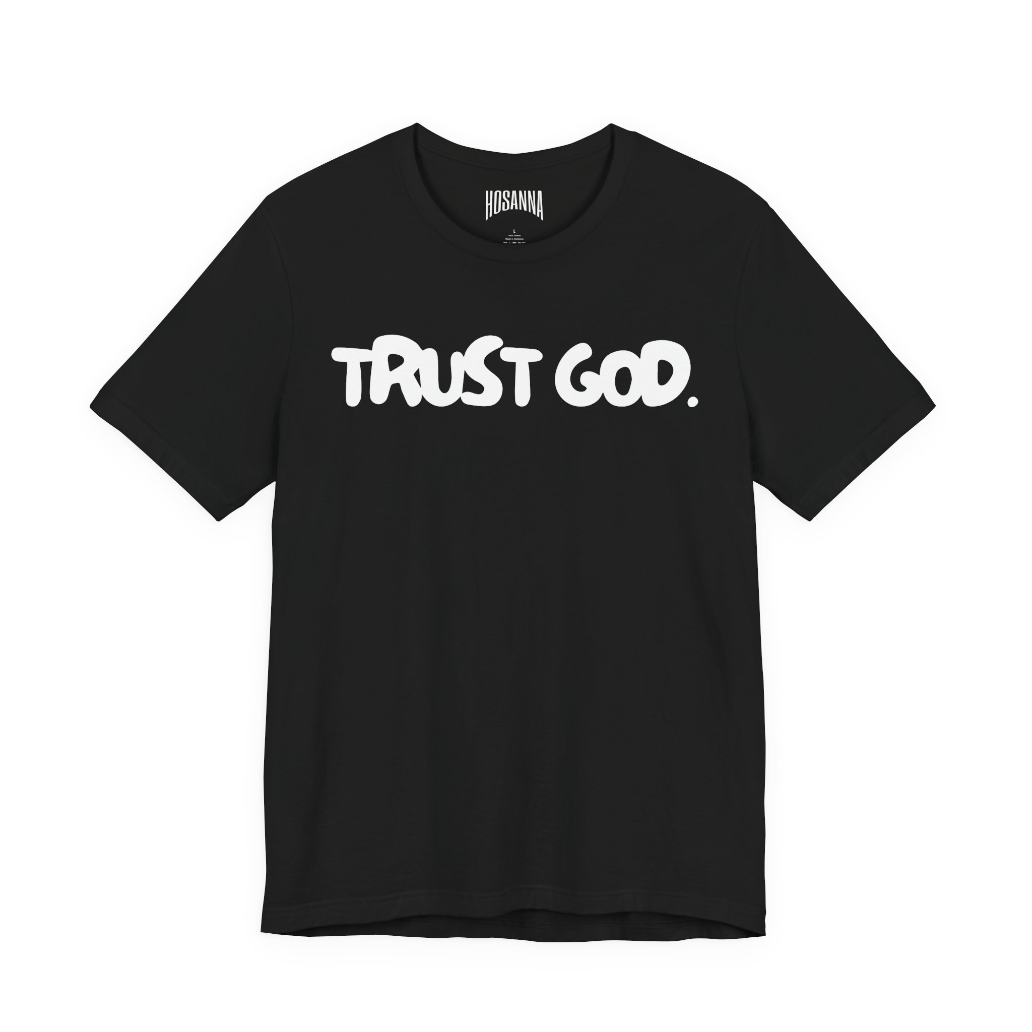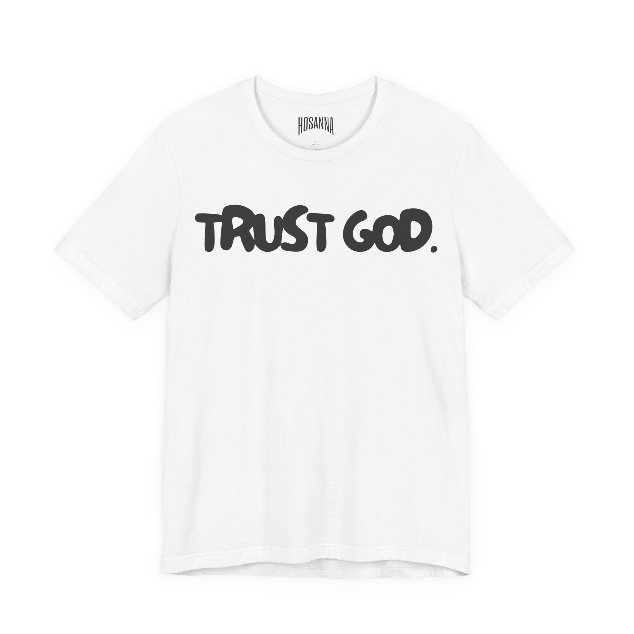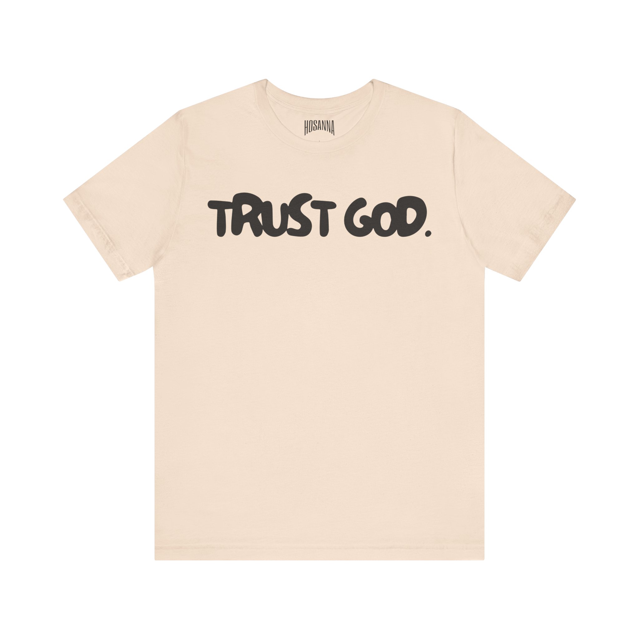 This tee features a minimalist and powerful message: “Trust God.” The simple, bold typography conveys strength and faith, reminding you to lean on God in every situation. Perfect for those who value simplicity with meaning.